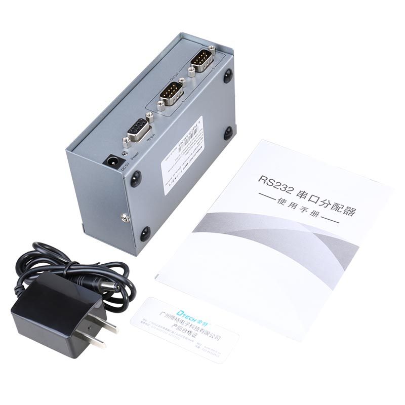 帝特 一分二串口分配器rs232串口集线器1进2出DB9针口双向共享器