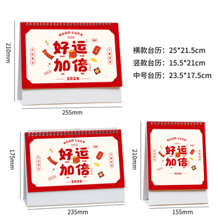 2026年新款 台历定制特大号中国红红色企业礼品订制三角台历制作日历喜庆商务台历桌面创意摆件马年月历定做