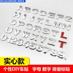 实心金属贴汽车贴纸车用英文字母车贴个性 数字贴车身排量尾标 改装