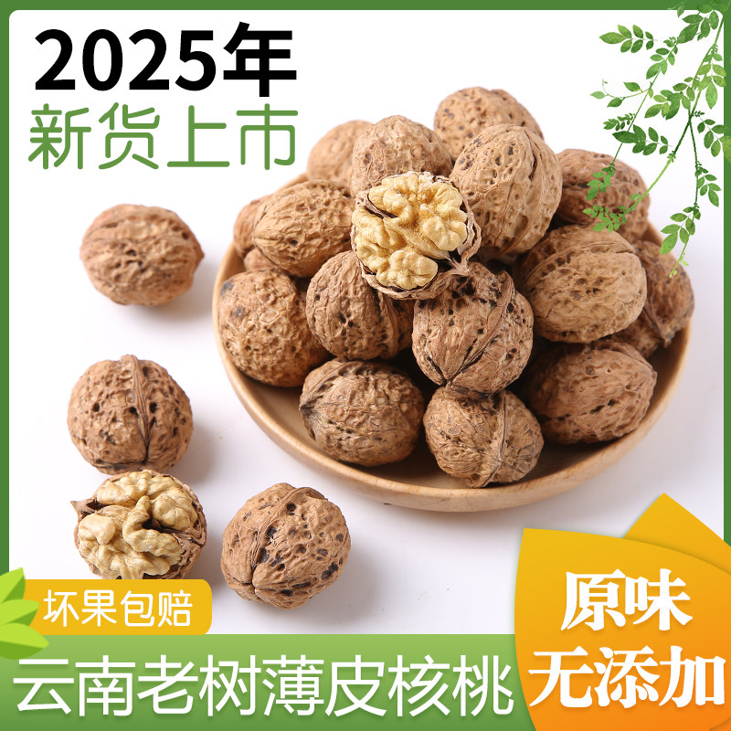 2025新货纸皮核桃云南特产薄皮核桃大果原味新鲜坚果老人孕妈零食