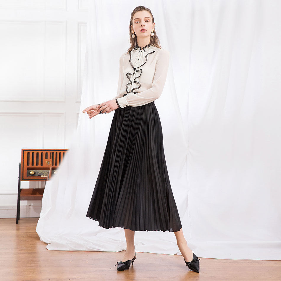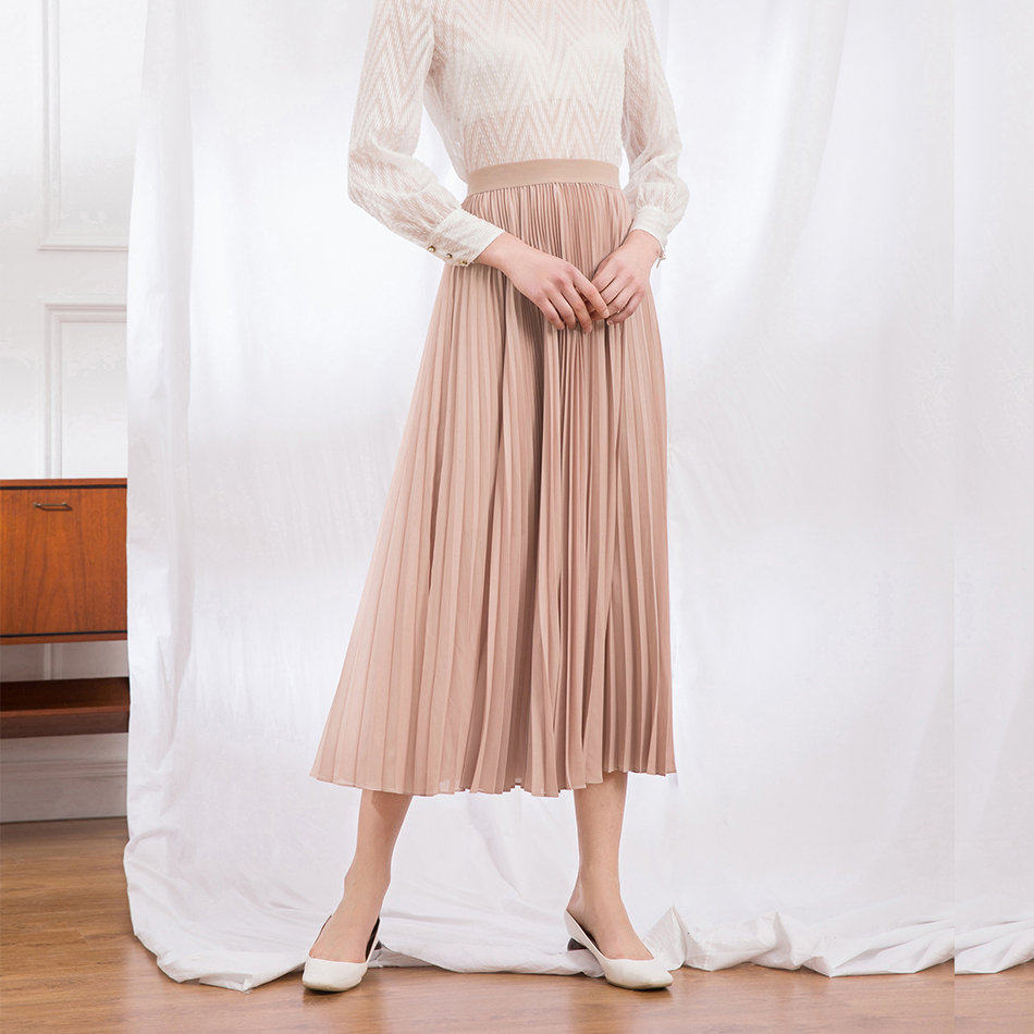 JJparty韩国进口TKY面料春秋高腰中长款 百褶裙女色半身垂感长裙