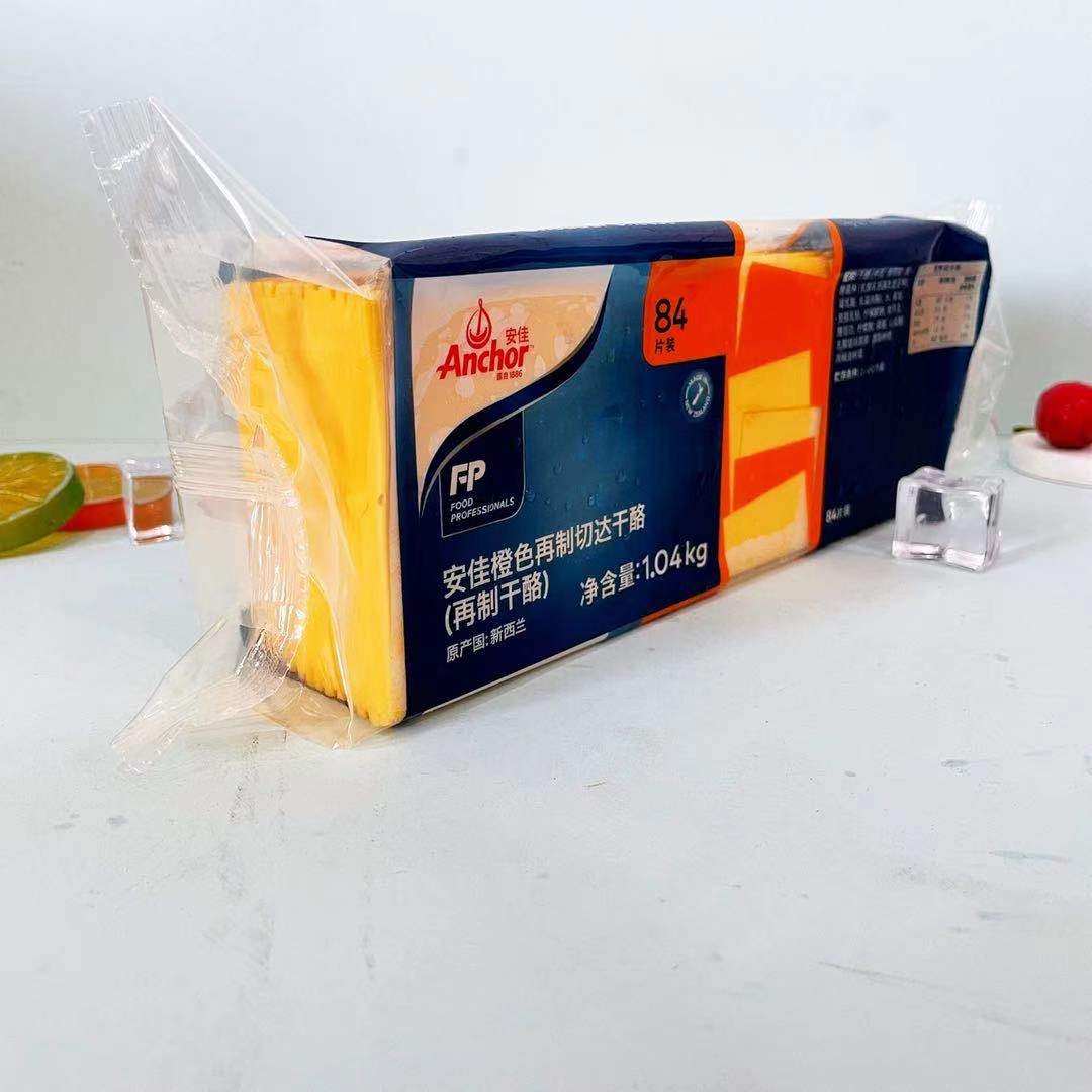 包邮 安佳橙色芝士片1.04kg 再制切达奶酪干酪84片汉堡三明治烘焙