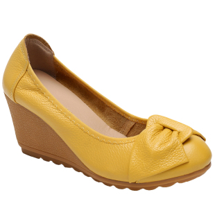 女鞋 坡跟软底上班工作鞋 2020春季 真皮牛筋底单鞋 子 新款 高跟豆豆鞋