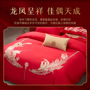梦洁家纺结婚四件套婚庆纯棉全棉喜庆婚嫁大红色喜被新婚床上用品