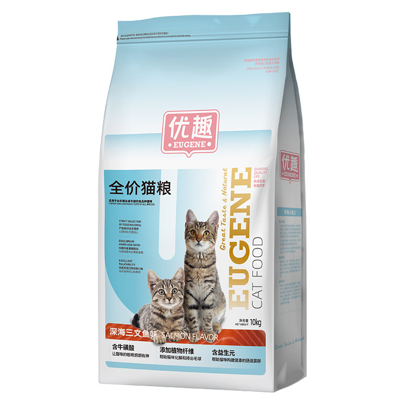 优趣猫粮深海鳕鱼味三文鱼味成年猫幼猫通用10kg猫粮20斤25省 包邮