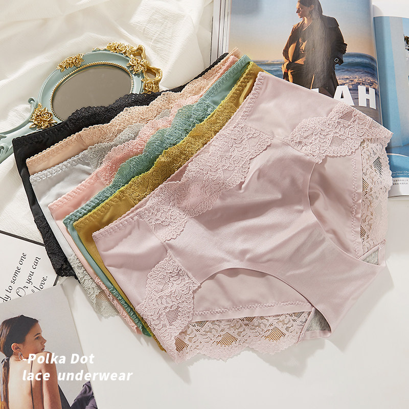 薄款 无痕内裤 纯棉抗菌裆部夏季 新款 女生纯欲冰丝蕾丝中腰女士短裤