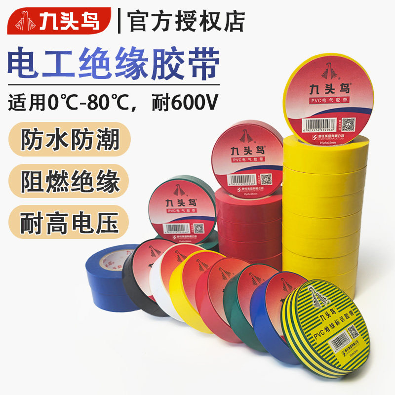 电工胶布阻燃高压绝缘胶带超薄PVC防水高粘电胶布 九头鸟正品
