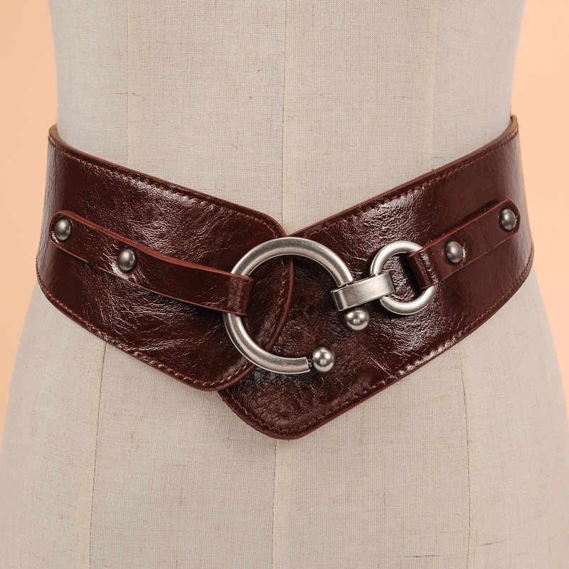 时尚 百搭女士弹力腰带松紧 宽款 新款 欧美斜搭宽皮带女 腰封女 韩版