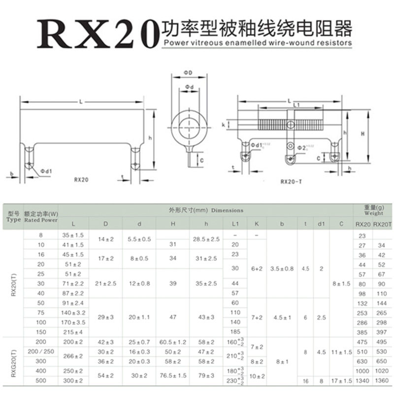 被釉陶瓷线绕电阻器电容高压放电RX20 300W10K15K20K25K30K40K50K