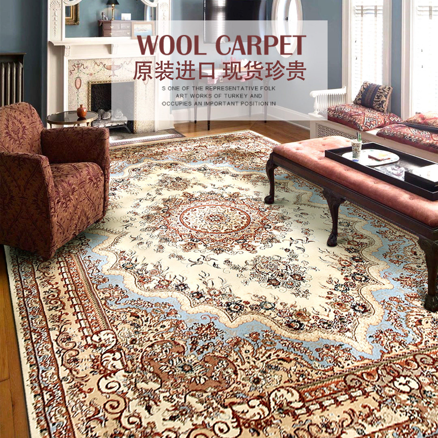 中式 房间美式 卧室床边毯茶几毯加厚 法式 进口羊毛波斯地毯客厅欧式