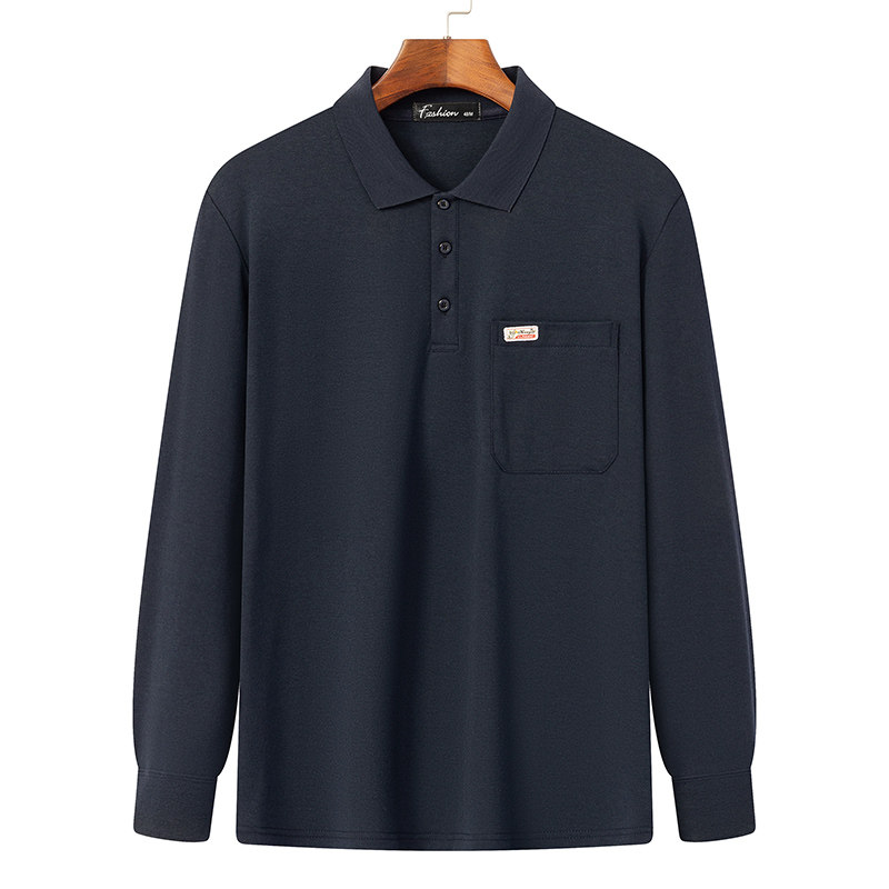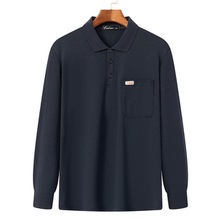 爸爸装 2025新款 中年男士 t恤纯色翻领时尚 休闲上衣 棉质长袖 春秋季