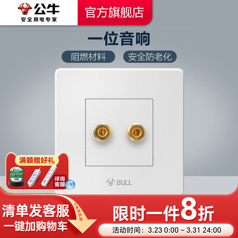公牛插座旗舰开关插座一位音箱线插座一位音箱音频插座面板G07白