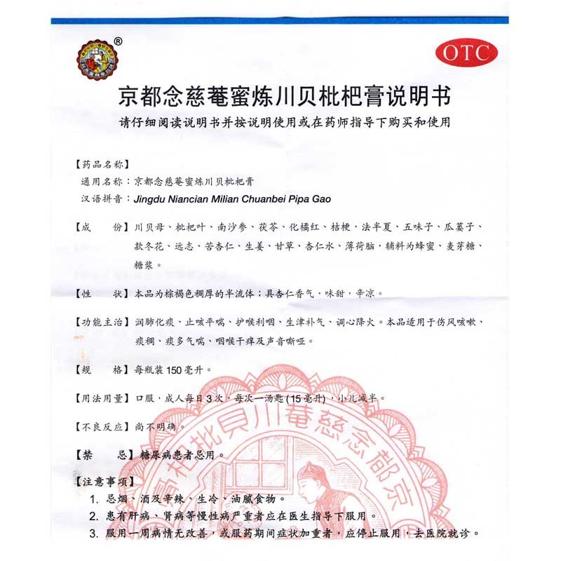 京都念慈菴蜜炼川贝枇杷膏150ml润肺化痰止咳平喘咳嗽痰多