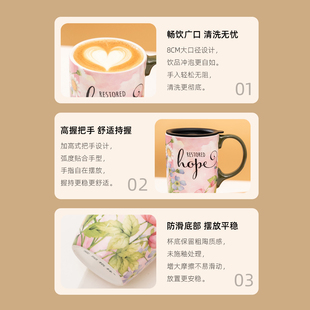 舍里可爱陶瓷马克杯带盖高颜值喝水杯设计感家用咖啡杯生日礼物女