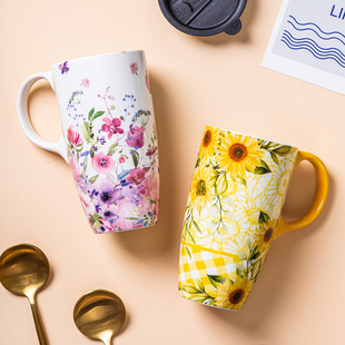 手绘杯子陶瓷水杯家用早餐杯马克杯燕麦杯精致情侣水杯咖啡杯茶杯