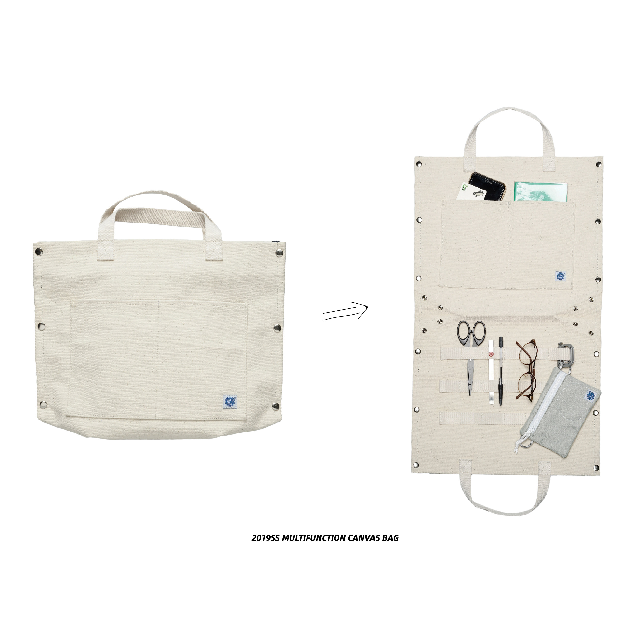 todaynowind 2019ss多功能手提帆布包复古坯布男女包可拆卸托特包