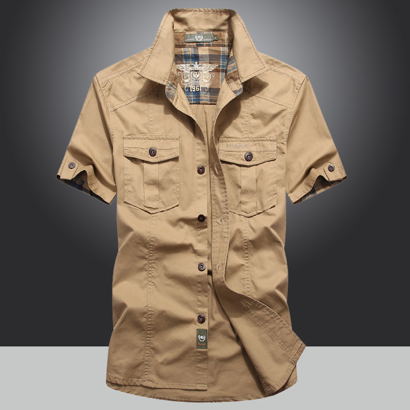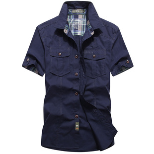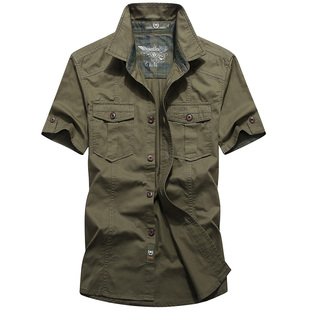 衬衫 男士 军装 爸爸工装 衬衣 夏天薄款 短袖 休闲大码 夏季 纯棉水洗衬衫