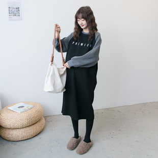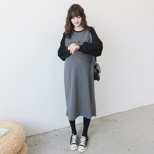 辣妈休闲运动长款 孕妇春装 秋冬装 宽松大码 上衣裙子 卫衣连衣裙韩版