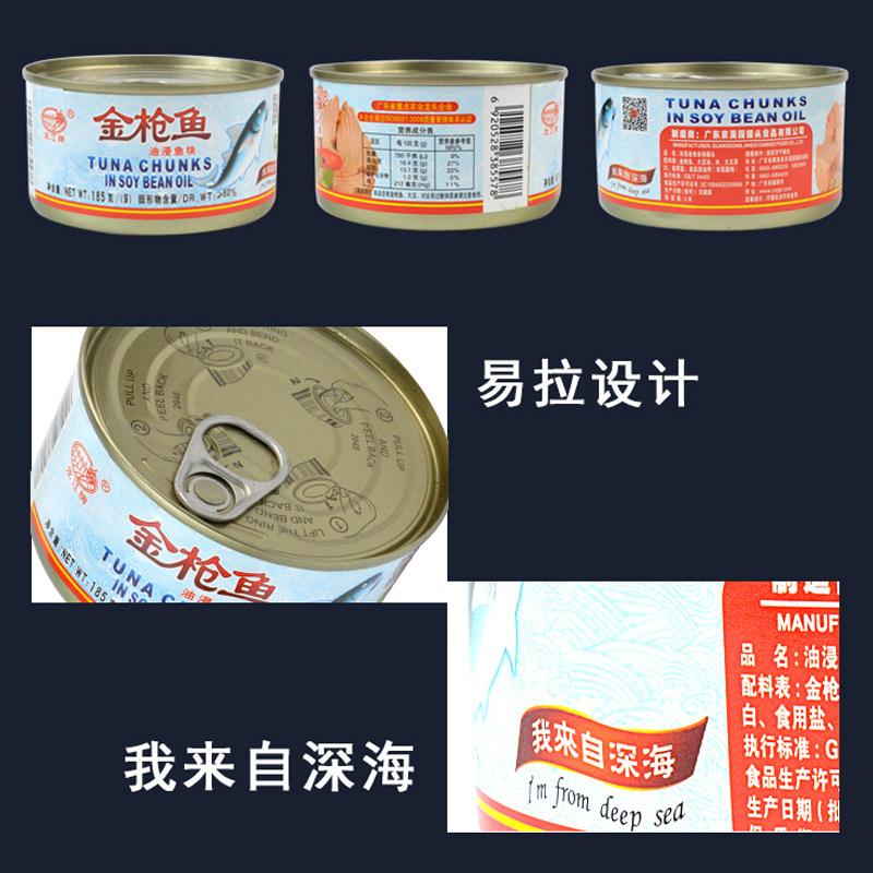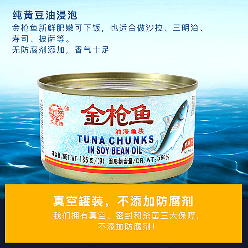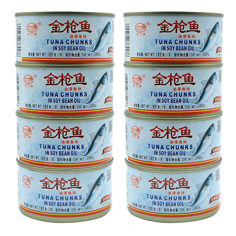 龙江牌金枪鱼罐头185g吞拿鱼即食鱼肉罐头寿司材料沙拉8罐 包邮