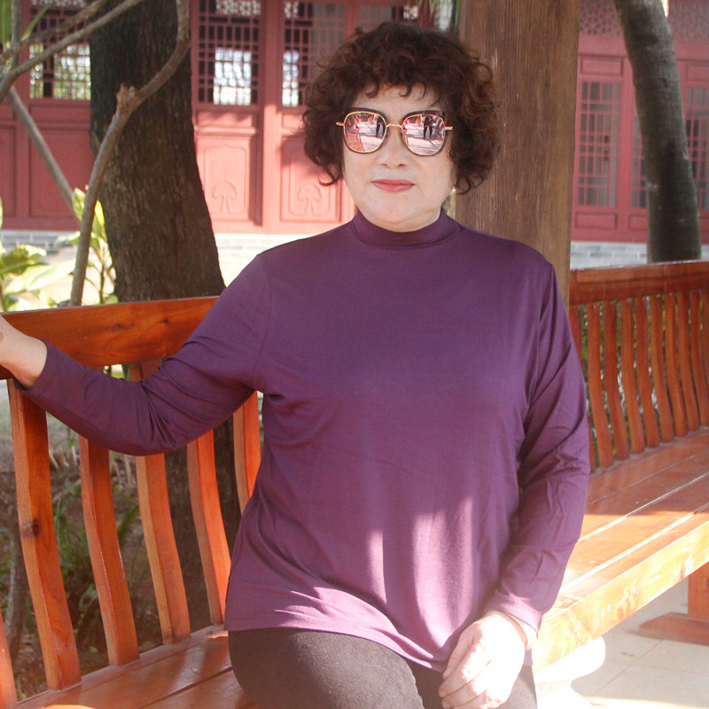 超胖妈妈上衣春秋莫代尔半高领打底衫 200斤宽松女T恤 中老年特大码