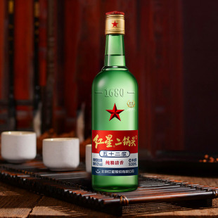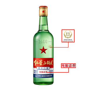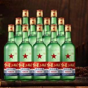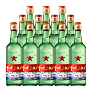 红星二锅头大二绿瓶52度500ml 清香型白酒纯粮口粮酒 12瓶整箱装