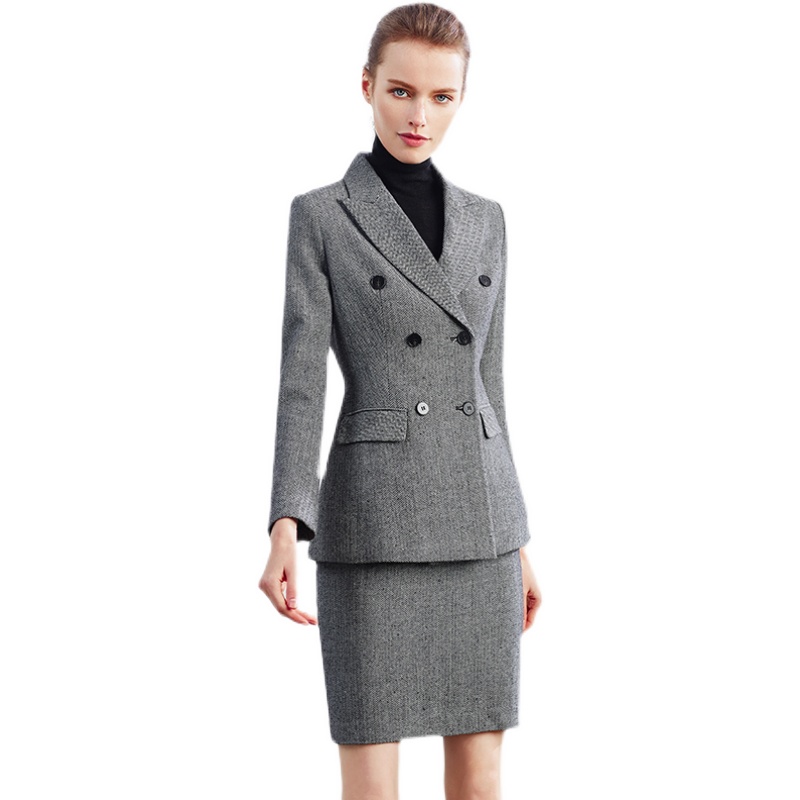 OL人字纹气质高端正装 时尚 制服套裙 女裙装 AD秋冬羊毛灰色职业套装