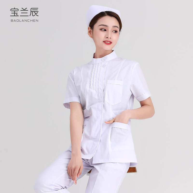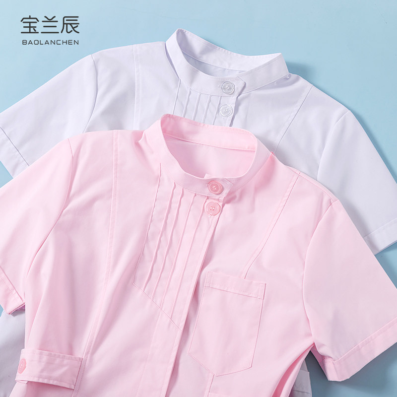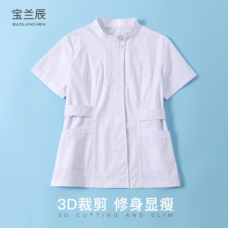 白大褂短袖 工作服 护士服女分体春秋医生尖立领实验服医用学生修身