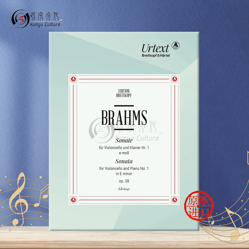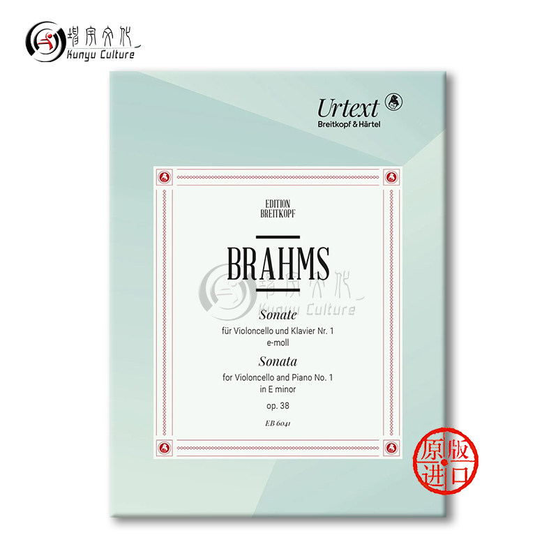 大熊Breitkopf原版 Brahms E小调大提琴奏鸣曲 附钢伴 EB6041 勃拉姆斯 乐谱书 Op38 Sonata Johannes minor