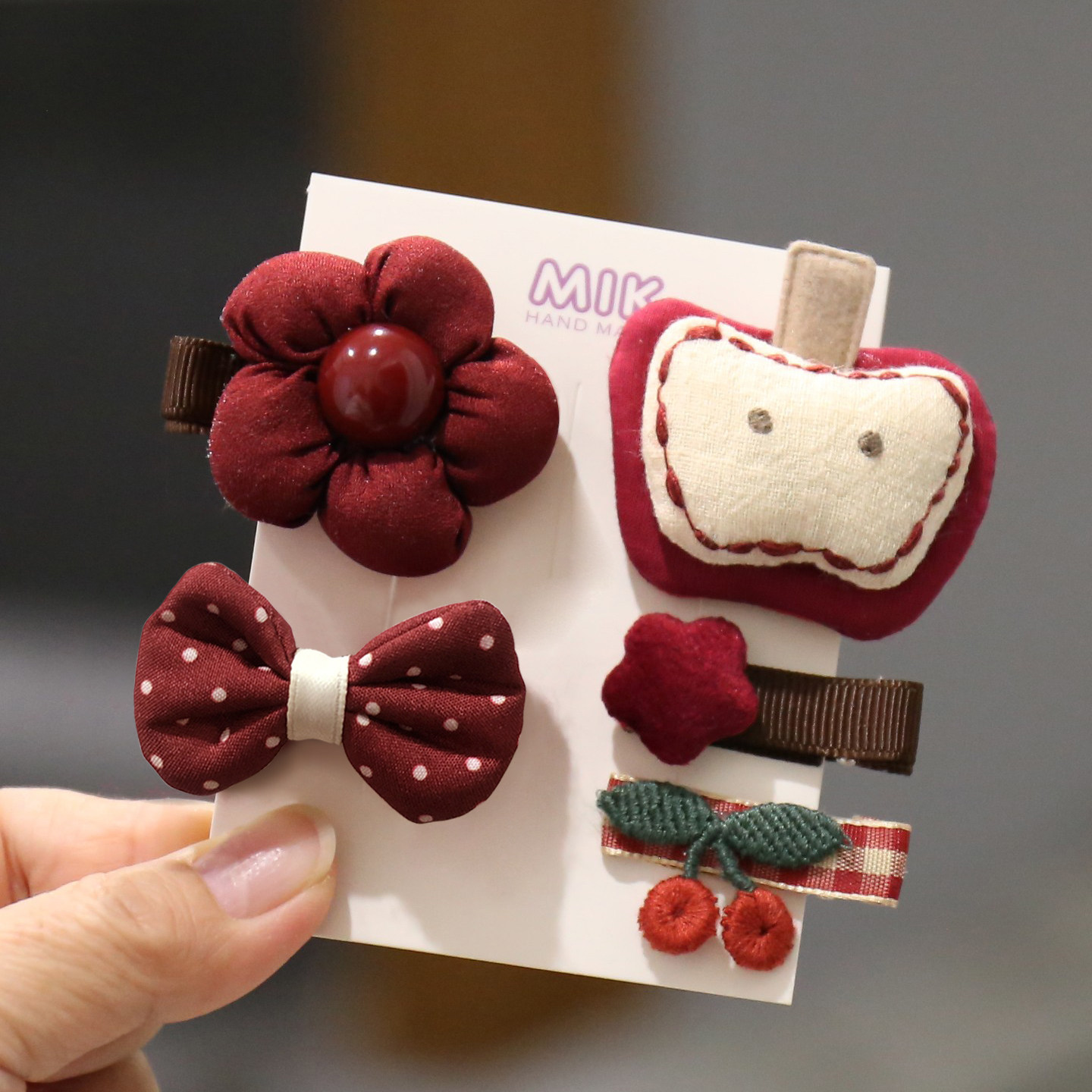 复古安可拉红珠珠水钻刘海小抓夹女精致小巧鲨鱼夹半扎发头饰发卡