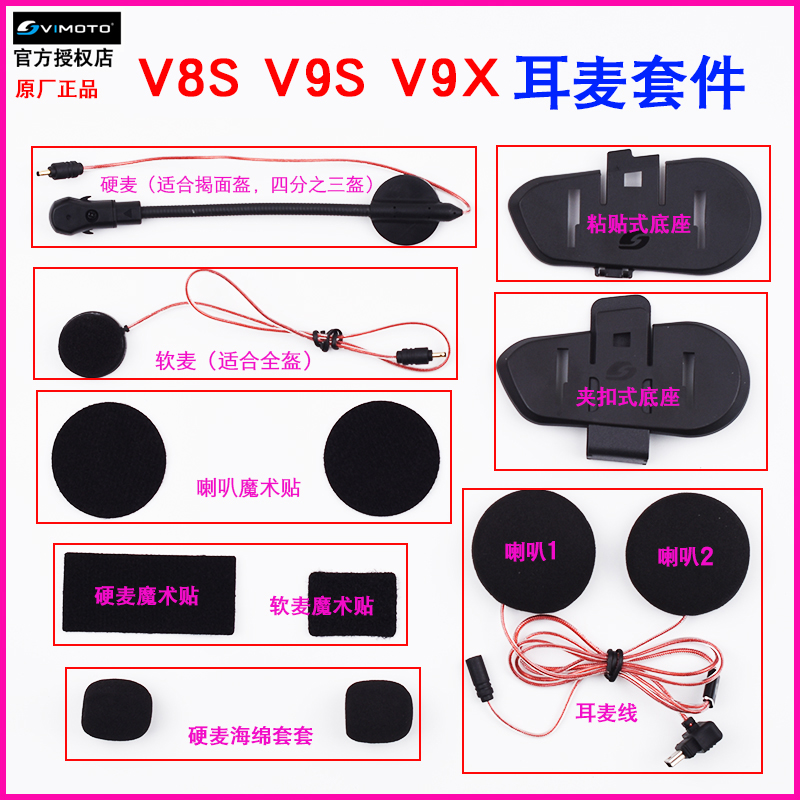 维迈通V9S配件 V9X底座耳机配件话筒JBL耳麦喇叭魔术贴套件包 V8S