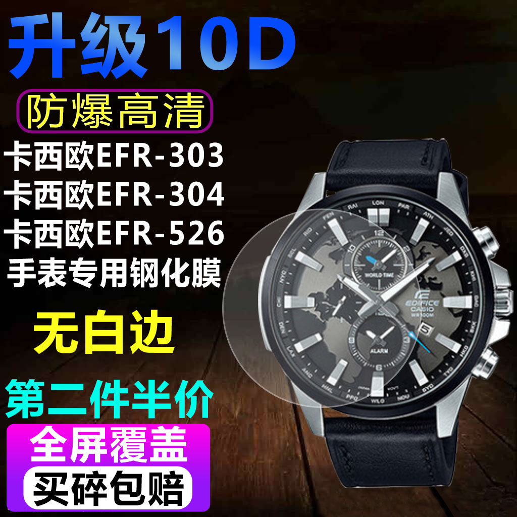 304 适用于卡西欧EFR 1A手表钢化膜EFR 526贴膜防爆保护膜 303L