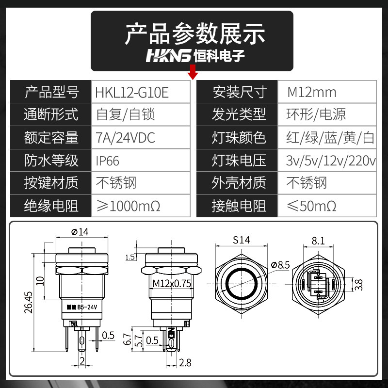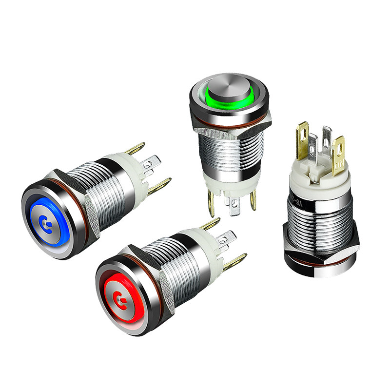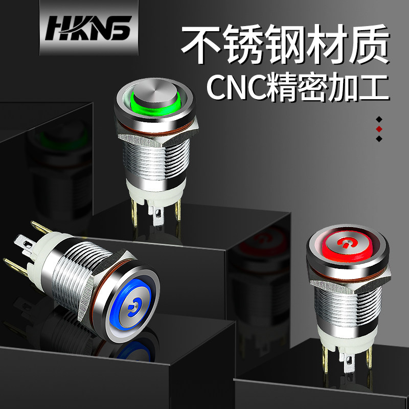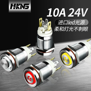 12mm金属按钮带灯220v7A24v10A大电流电源开关小型自复自锁天使眼