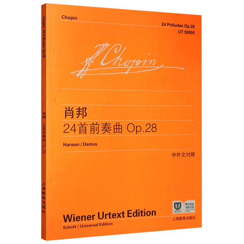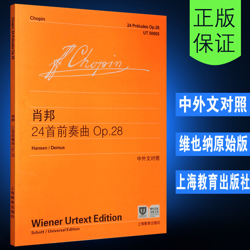维也纳原始版 中英文对照 钢琴入门基础教程 儿童钢琴初学乐谱自学曲谱练习曲教材书籍 社 正版 上海教育出版 肖邦24首前奏曲Op28