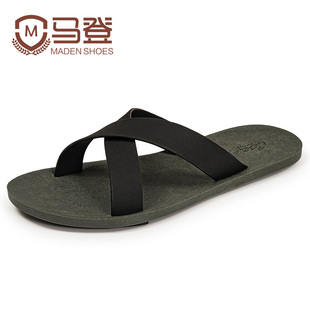 户外穿休闲旅行一字拖交叉沙滩鞋 马登泰国橡胶凉拖鞋 男2026夏新款