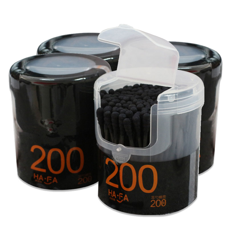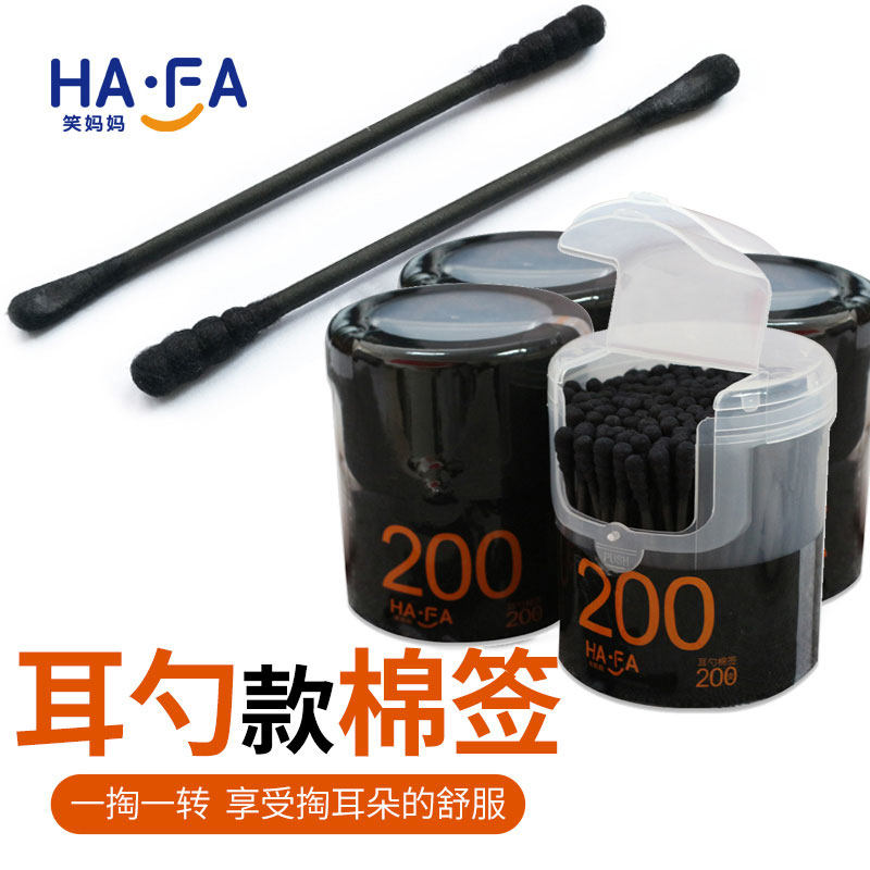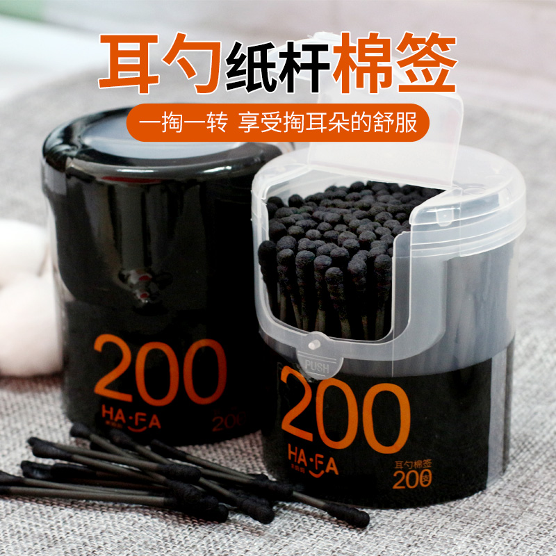 800只耳勺棉签掏耳双头螺旋款 棉签竹炭纸杆非木棒抠耳朵黑色棉签