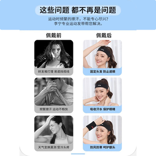 李宁运动发带男头带止汗头巾女吸汗跑步篮球健身防导汗束护额发箍