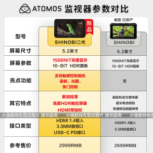 ATOMOS 阿童木史努比二代监视器SHINOBI隐刃HDR摄影5寸SDI显示屏微单反高清HDMI导演4K视频显示器相机