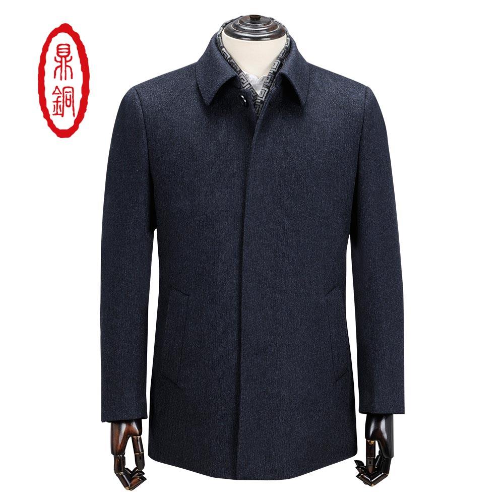 鼎铜羊绒大衣男中长款 中老年加厚奢华羽绒服毛呢高端商务外套 冬季