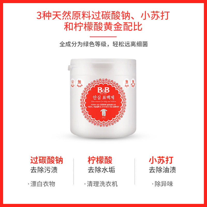 B&B保宁宝宝安心漂白剂去渍去黄增白衣物漂白粉500g全家可用