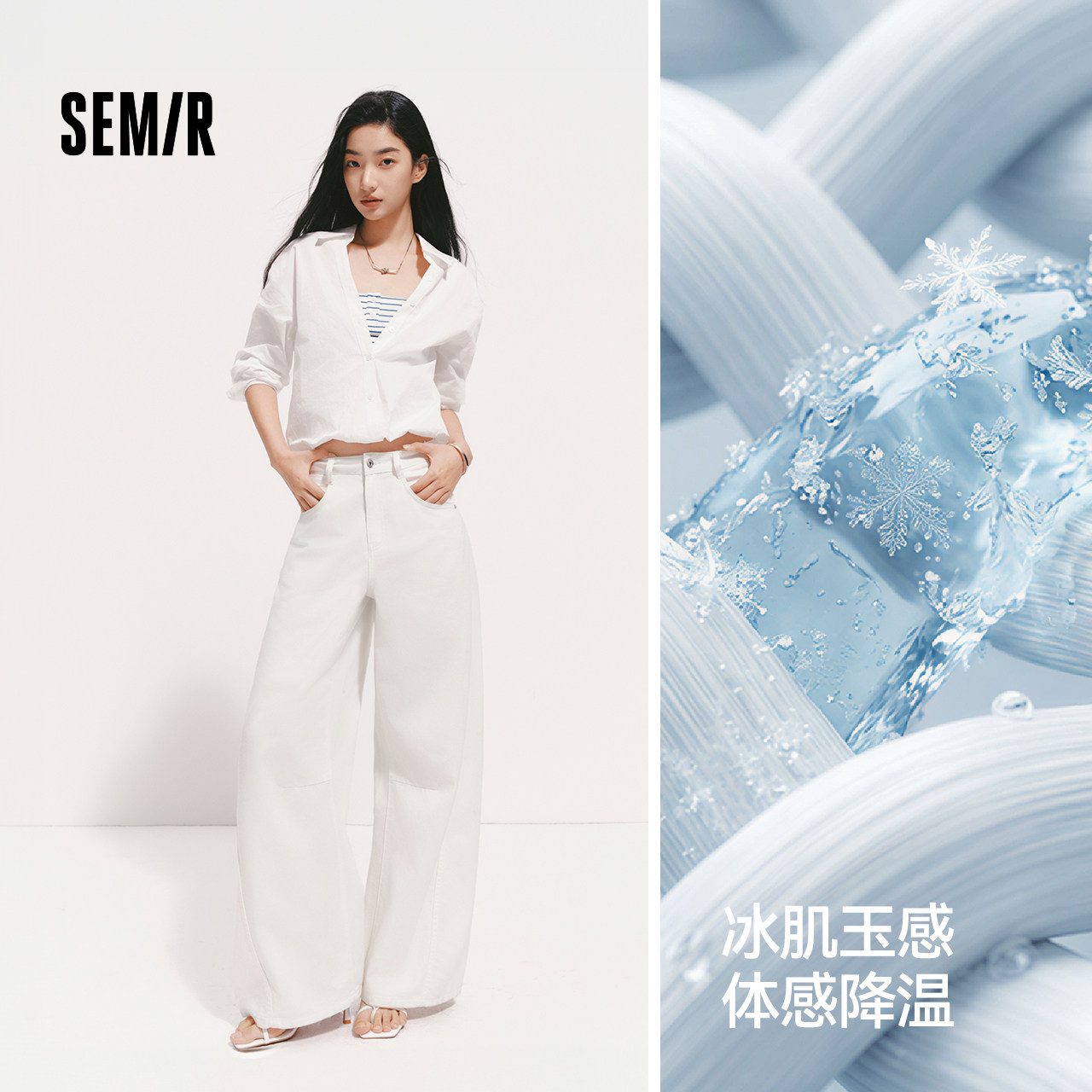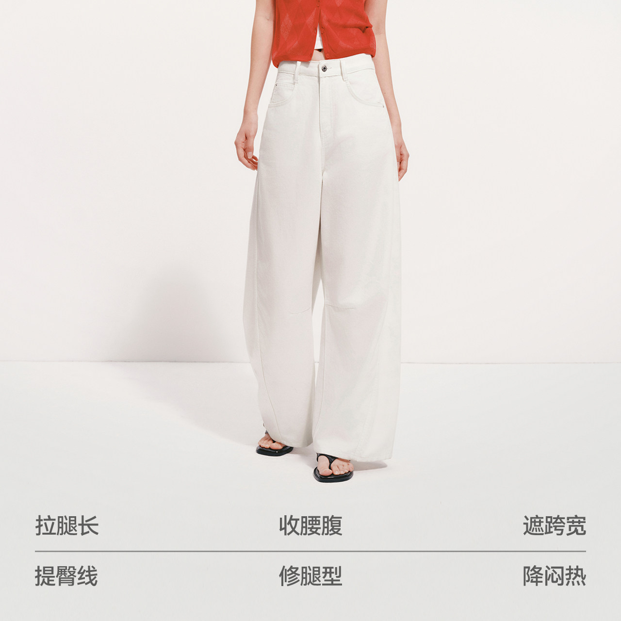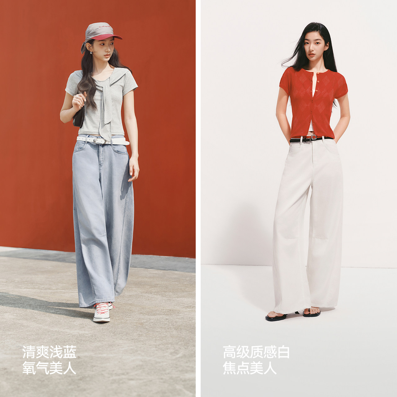 阔腿裤 森柔 凉感抑菌2026新款 女夏分割宽松弯刀拖地裤 森马牛仔裤