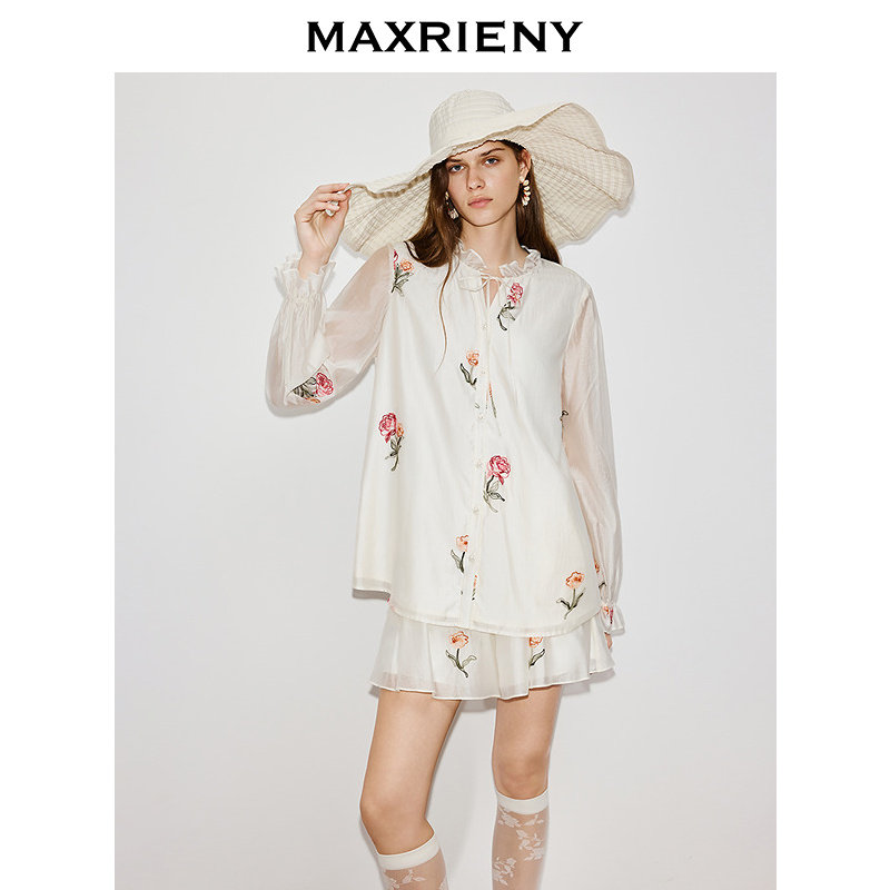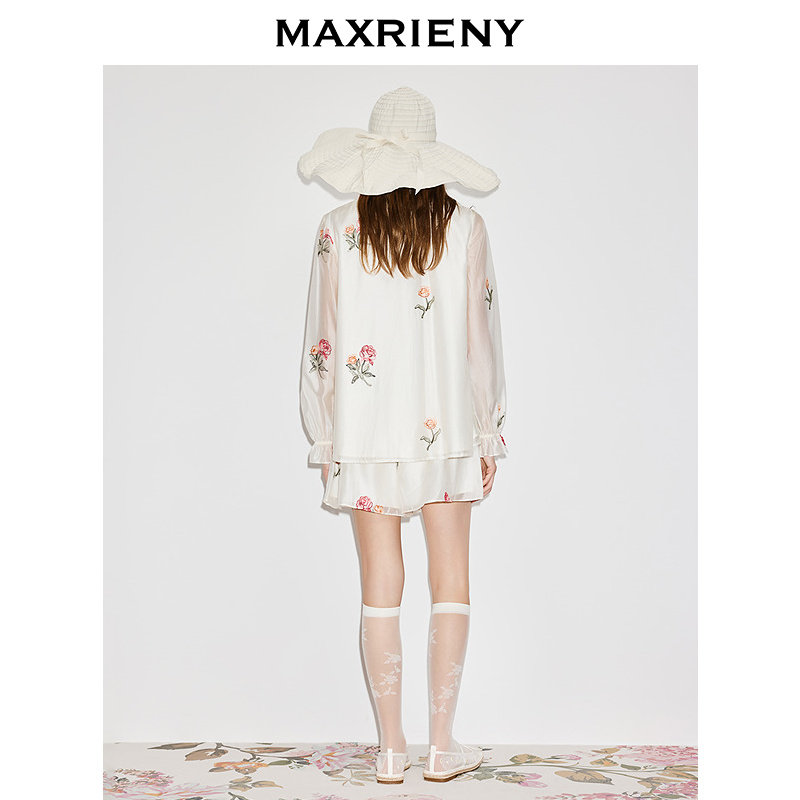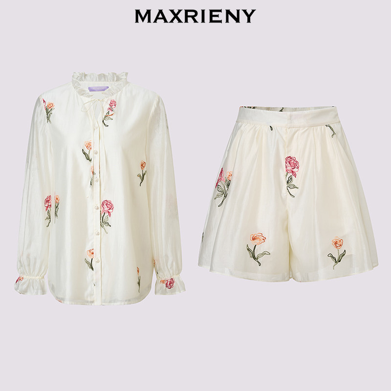 裤 套装 子两件套2026年春季 玫瑰绣花系带宽松时尚 新款 MAXRIENY衬衫