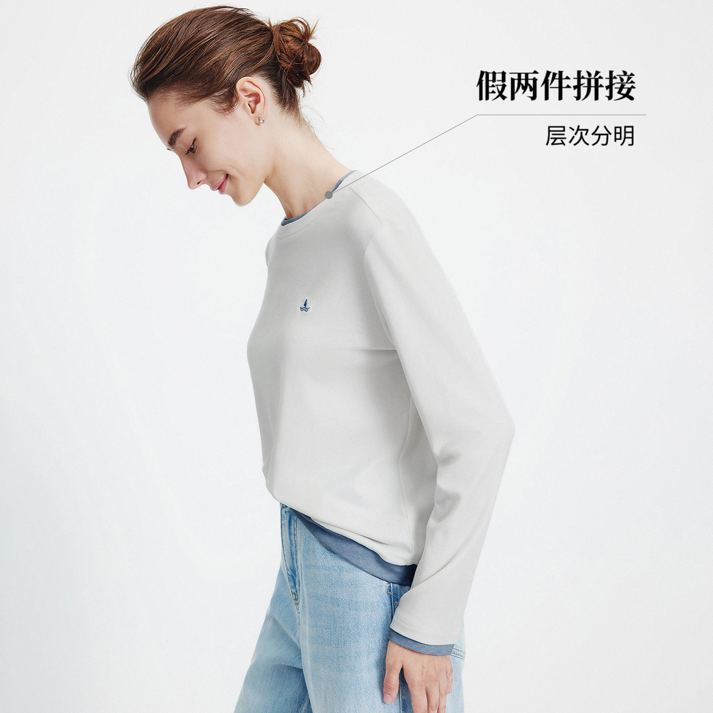 T恤衫 百搭假两件白色高弹长袖 新款 Navigare意大利小帆船2026春季