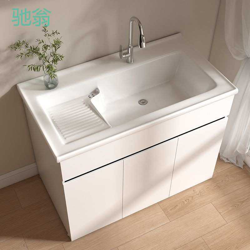 Kxh阳台柜陶瓷一体蜂窝洗手组合洗漱洗衣机伴侣搓衣板现做洗衣洗