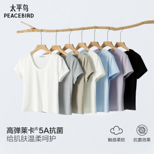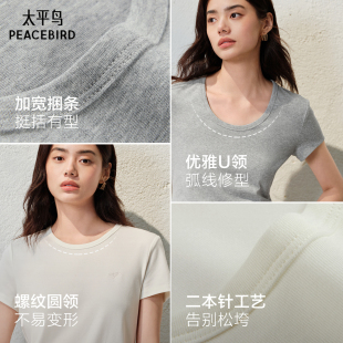 T恤26夏新款 太平鸟5A抗菌正肩基础短袖 U领圆领上衣 早八通勤T