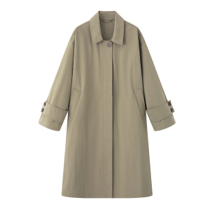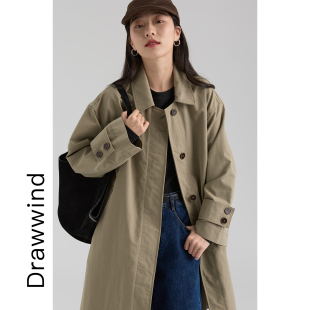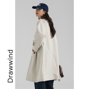 单排扣纯色翻领上衣外套 风衣女宽松长款 画风drawwind2026春季 新款