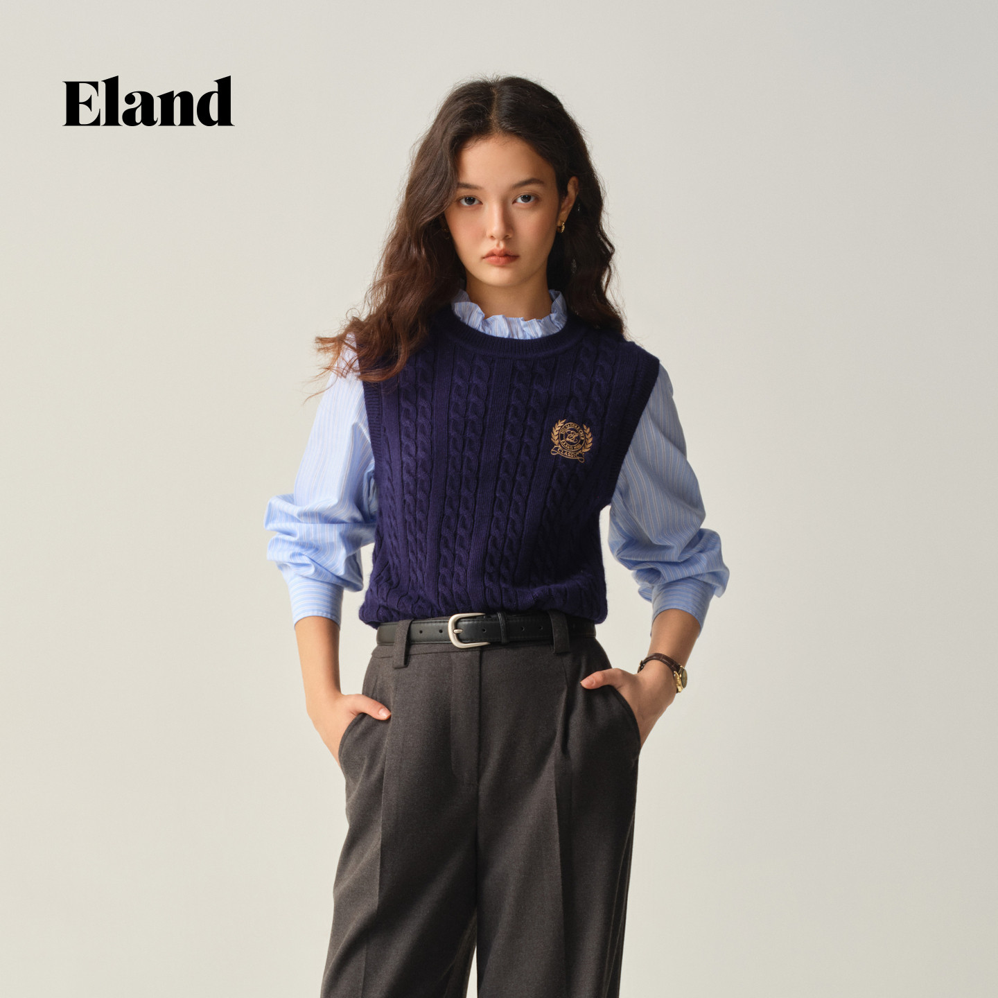 针织衫 假两件长袖 Eland衣恋毛衣女时尚 2026新款 常春藤