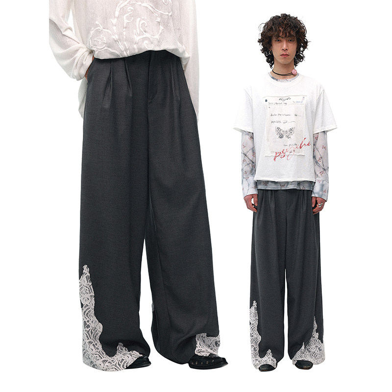 物理少年×柏林护士联名「失控边缘」羊毛蕾丝贴布拼接垂感西裤