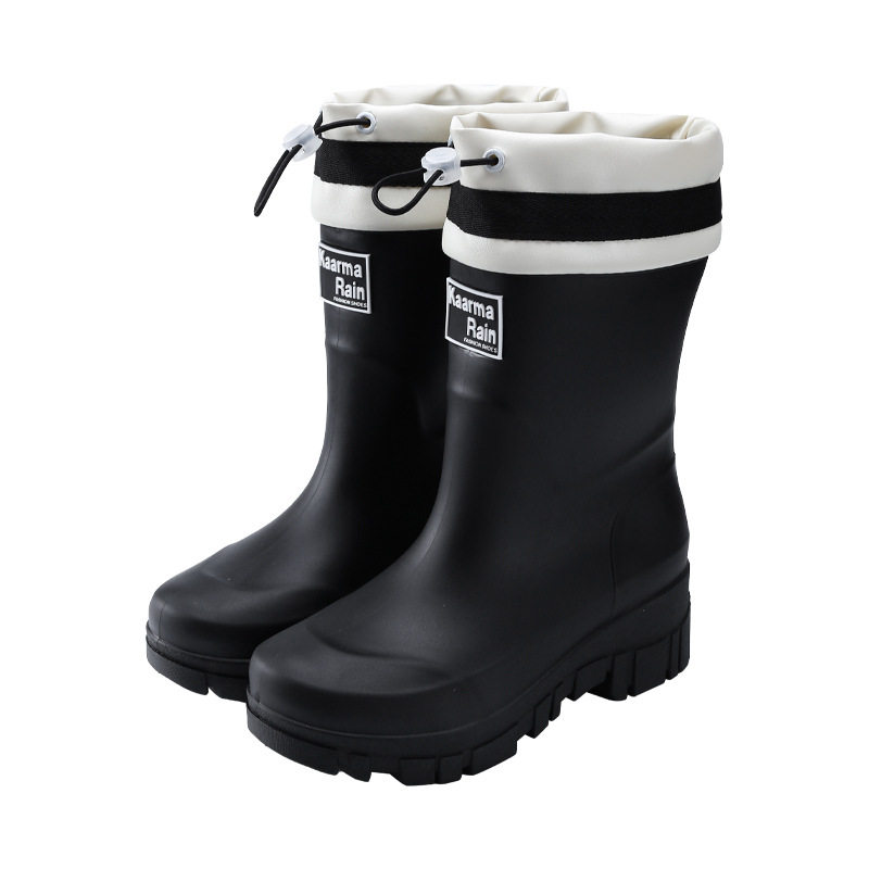 防水束口女雨靴加绒雨林徒步防滑保暖防水胶鞋 户外超新款 中筒时尚