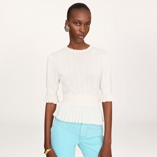 Chloe蔻依 新品 26夏季 新款 羊毛针织荷叶边毛衣 短款 夏季