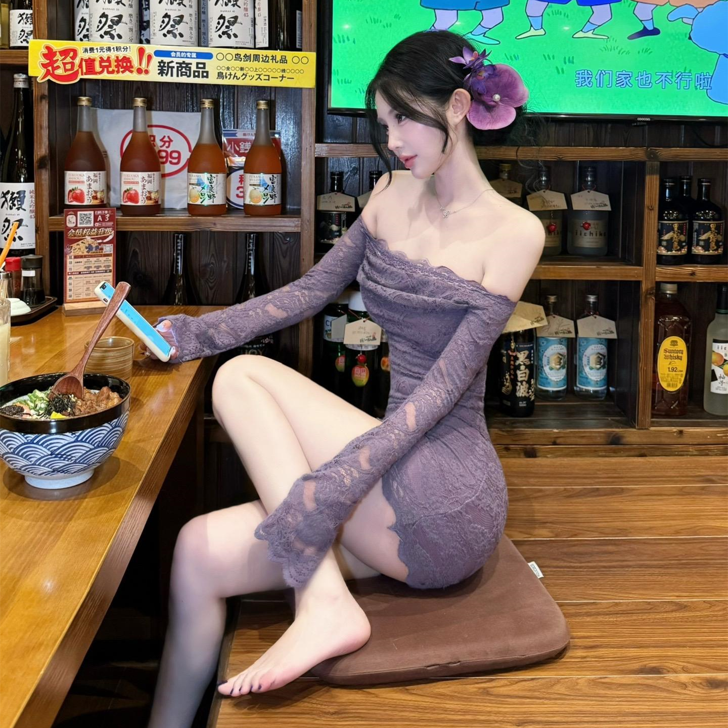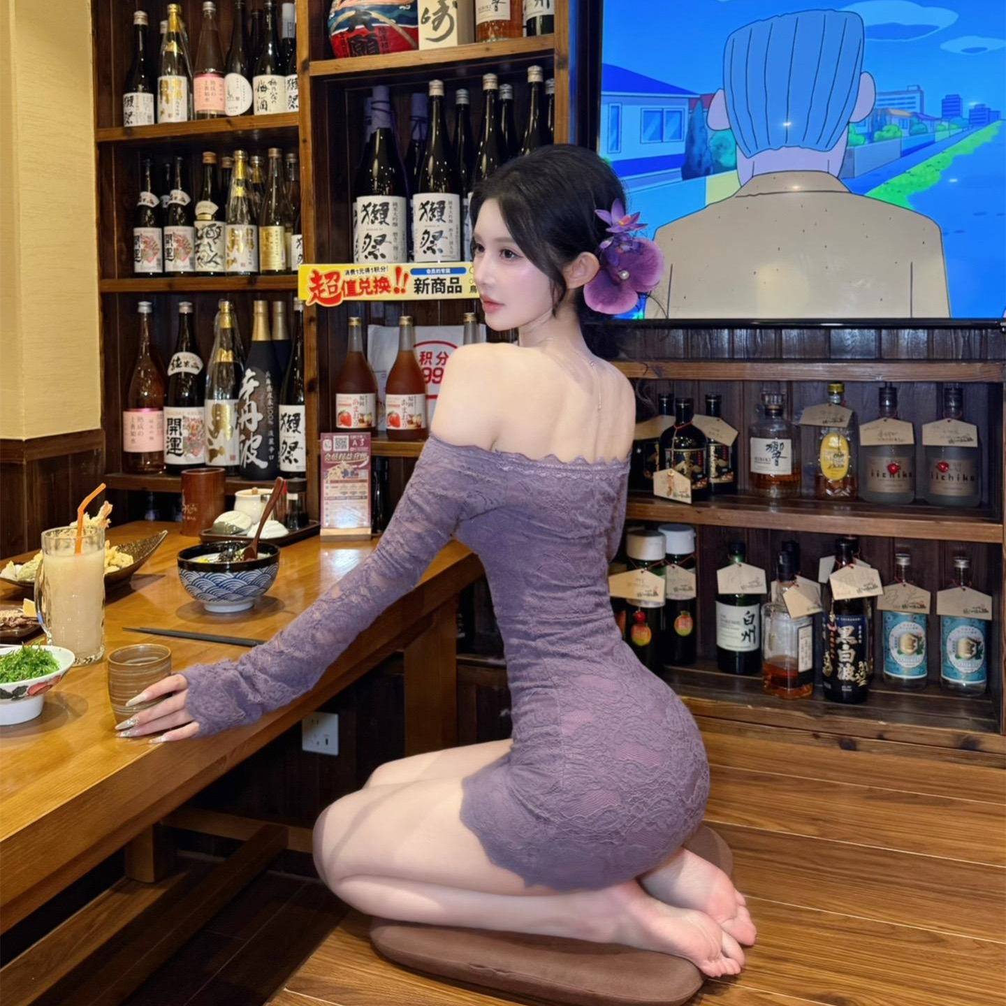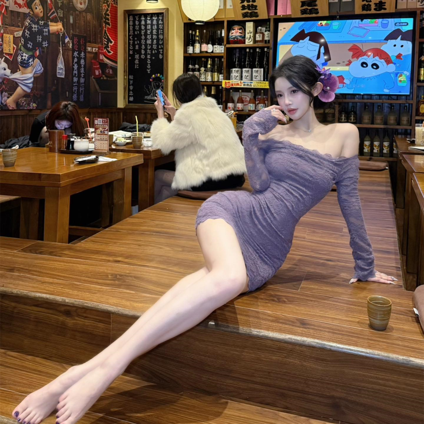 连衣裙女长袖 露肩修身 针织裙子紧身包臀短裙 现货6折 pusumede
